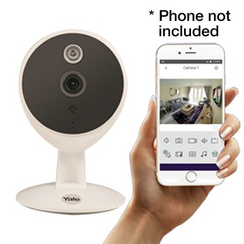 توفر لك كاميرا Yale Home View راحة البال لأنها تسمح لك بمشاهدة منزلك من الداخل عبر هاتفك الذكي أو الجهاز اللوحي بجودة HD720.