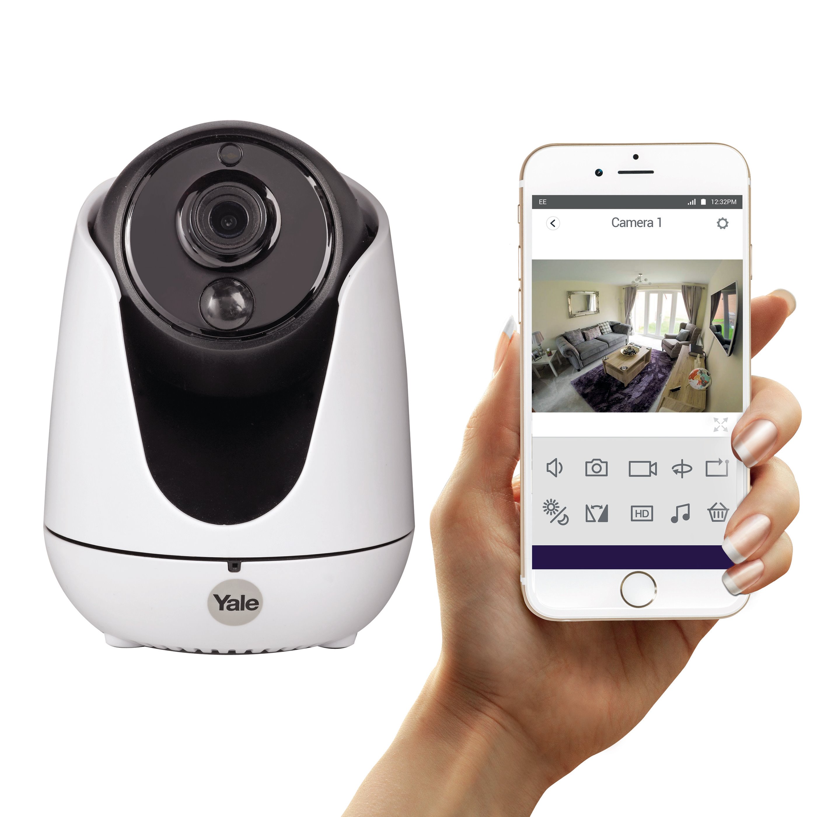 توفر لك كاميرا Yale Home View المتحركة راحة البال لأنها تسمح لك بمشاهدة منزلك من الداخل عبر هاتفك الذكي أو الجهاز اللوحي بجودة HD720. قم بتدوير الكاميرا، تغيير زاوية العرض والتكبير والتصغير عن بُعد من خلال هاتفك الذكي أو الجهاز اللوحي.