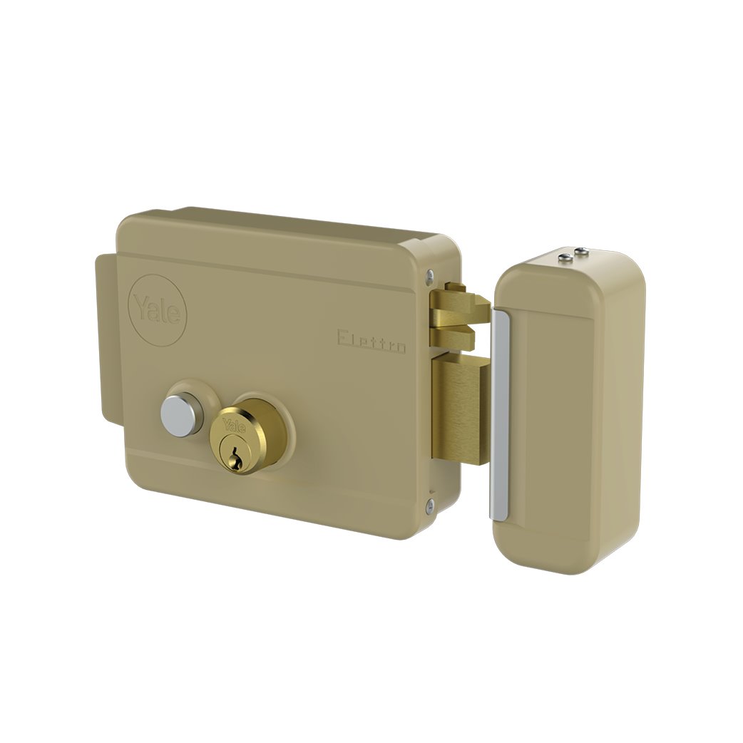 - Latch operated from outside by key and from inside by button (can be locked with key) and remotely by low voltage pulse (10W-12V)