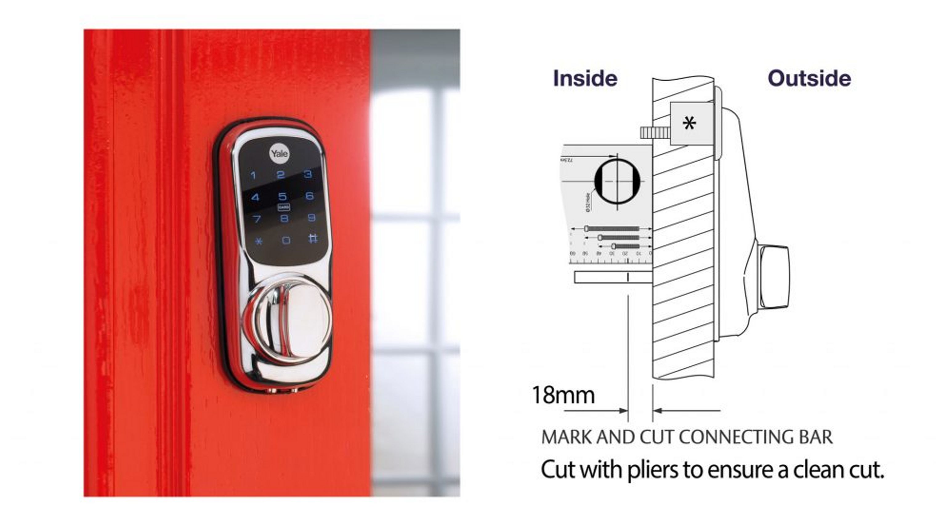 Please take the nightlatch off the inside of the door, you should now see the tailbar coming from the back of the Keyless Connected.