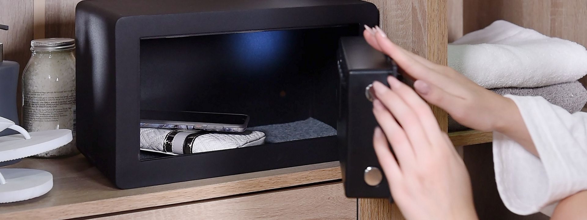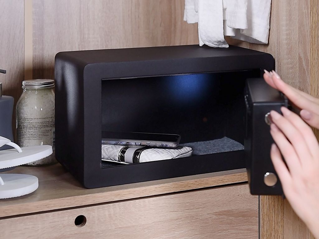 N'oubliez pas que si vous avez ouvert le coffre-fort avec la clé, vous devez également le verrouiller avec la clé. Et ensuite avec le code comme d'habitude. Si le coffre-fort a été ouvert par la méthode électronique (code), verrouillez la porte du coffre-fort en appuyant sur la "coche" et la "clé" pour sécuriser électroniquement le coffre-fort.