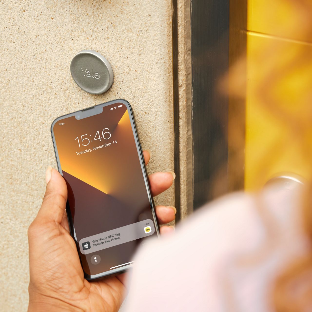 Een eigenaar hoeft niet binnen het Bluetooth-bereik van het Yale smart lock te zijn om het te bedienen. Dit betekent dat als je eigenaarsrechten hebt gekregen, de Yale Dot® overal kan worden geplaatst. Wanneer een eigenaar op de Yale Dot® tikt, wordt de Yale Home app automatisch gestart en wordt de status van het slot van Vergrendeld naar Ontgrendeld gewijzigd.