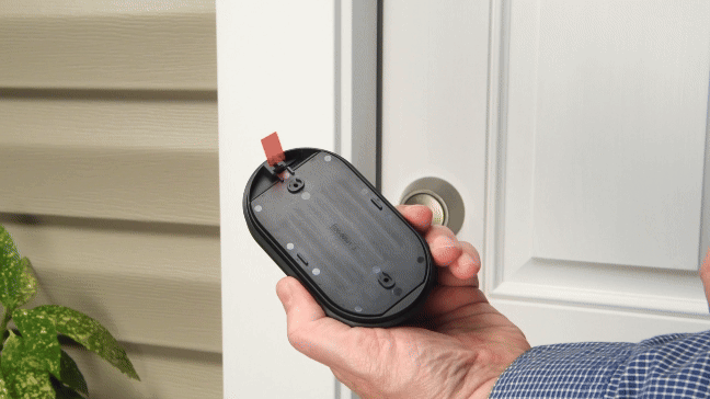 Als de trekstrip niet meer bevestigd is, of als de keypad op een eigendom is geïnstalleerd, moet je de verwijderingspen gebruiken die in de doos is geleverd.