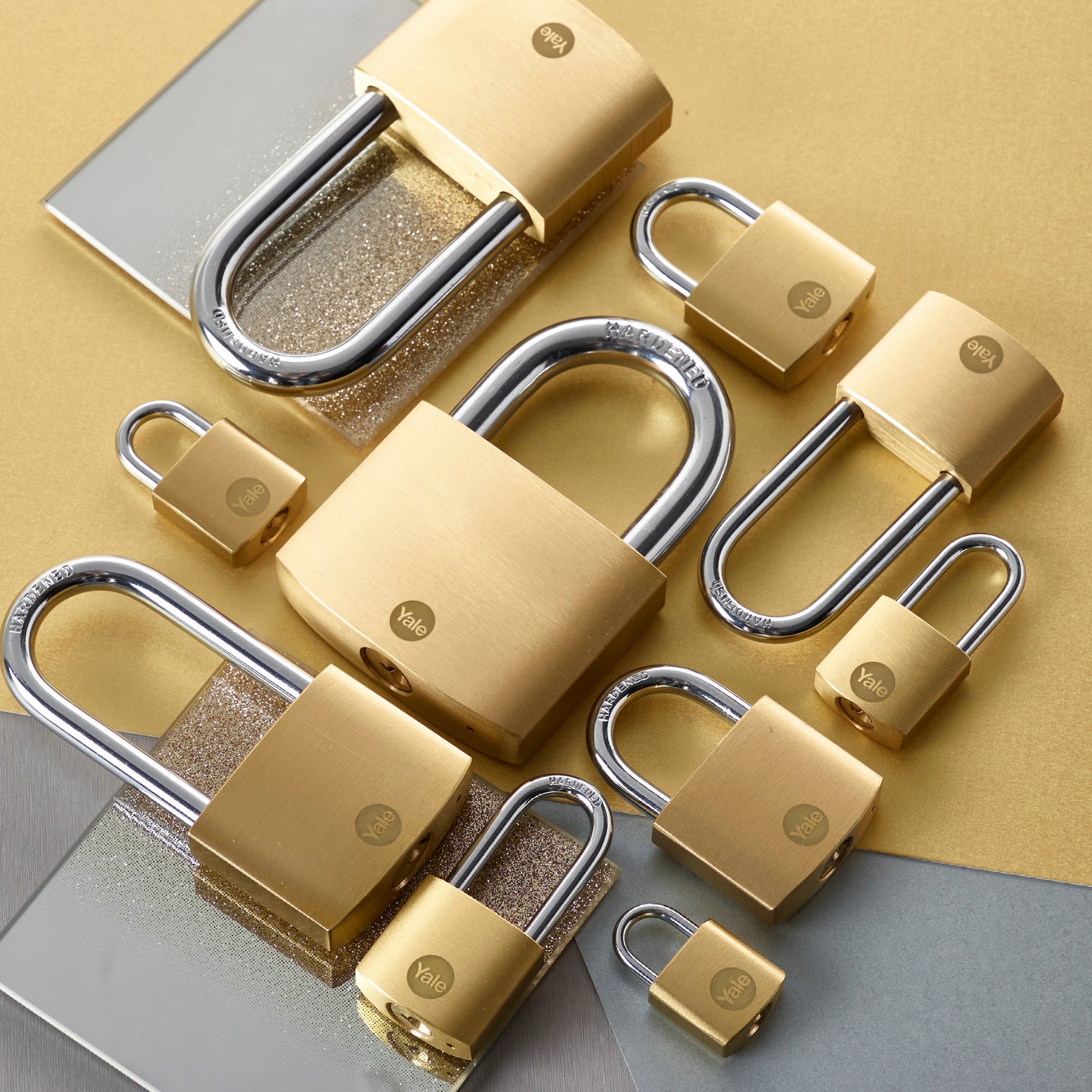 Y110B - Messing korpusega ja tugevdatud terasest aasaga tabalukk, 50mm