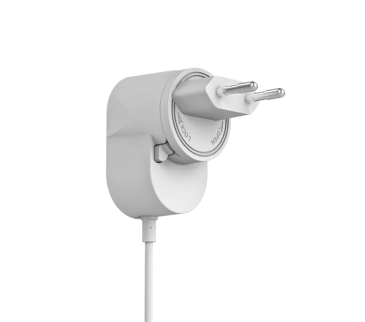 Yale AC Power Adapter on käyttäjäystävällinen ja vaivaton ratkaisu, joka antaa sinulle mahdollisuuden liittää Yale Smart Video Doorbell -ovikellokamerasi jatkuvaan virtalähteiseen, vaikka sinulla ei olisi olemassa olevia ovikellon johdotuksia. Kahdeksan metrin pituinen kaapeli ja mukana tuleva pistoke tekevät asennuksesta helppoa. Voit asentaa video-ovikellon haluamaasi paikkaan. Liitä vain liittimet ovikellon takaosaan ja toinen pää pistorasiaan, ja saat video-ovikellollesi jatkuvan virtalähteen. Käytä vain sisäpistorasian kanssa.
