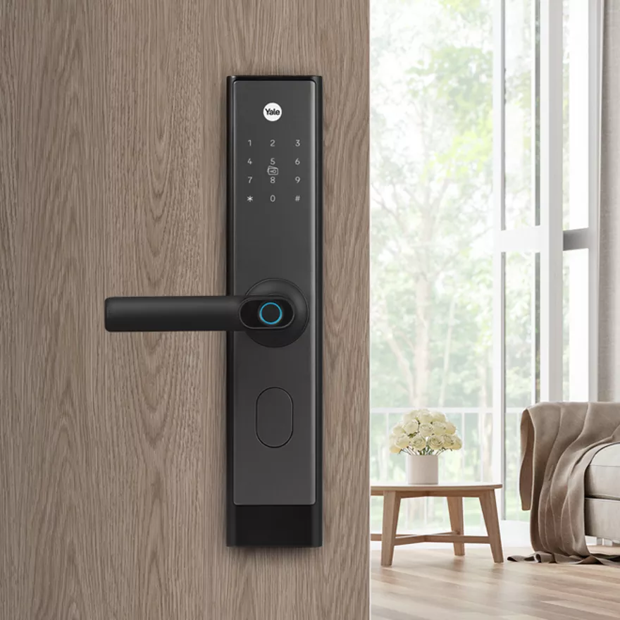 最新6合1智能鎖,憑藉我們獲得專利的偏心設計,防夾手,自動鎖體提供順暢、快速的上鎖或解鎖體驗,低噪音。 備有面部識別、指紋、密碼、拍卡及鎖匙開啟方式。配上藍牙模組/WiFi更可以遠距離用手機APP開門。Yale Luna Pro
