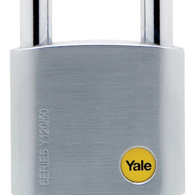 Y120/50/163 - Yale Silver Series Outdoor Brass/Satin Long Shackle Padlock (Boron Shackle)
