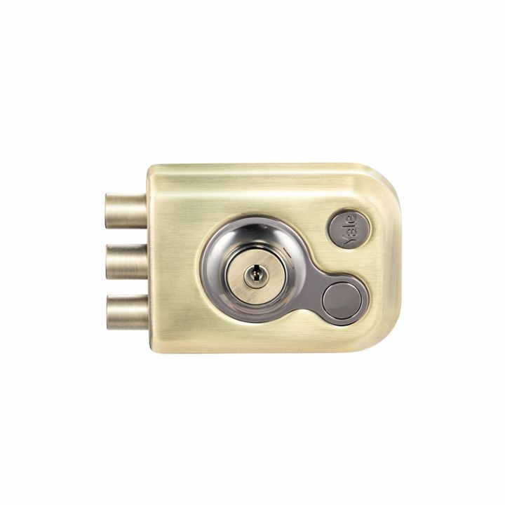 Yale Kratos Rim Lock -Tribolt, 3 Deadbolts, Double Cylinder, 4 Dimple Keys (Satin Steel Matt and Black Nickel)