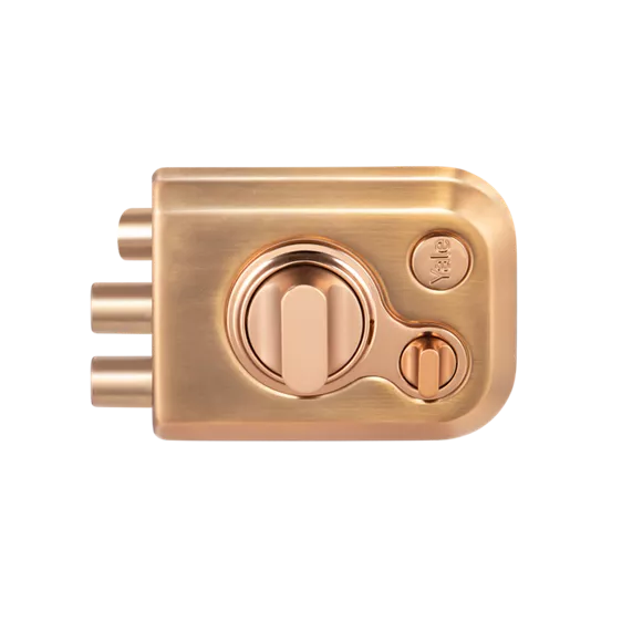 Yale Kratos Rim Lock -Tribolt, 2 Deadbolts and 1 Latch Bolt, Thumbturn, 4 Dimple Keys (Black Matt and Rose Gold)KRT-LB-TT-SSM/BN