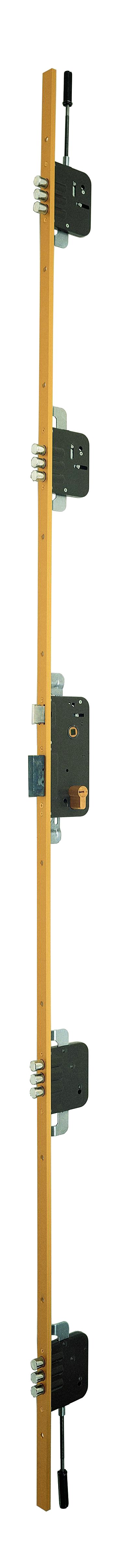 - Pêne dormant avec trois pênes en acier sur les quatre autres points de fermeture horizontaux