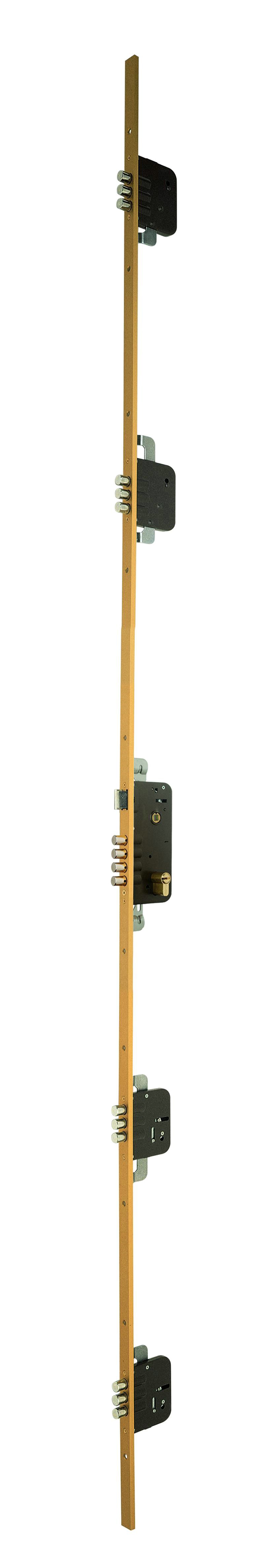 - Pêne dormant avec trois pênes ronds en acier sur les cinq autres points de fermeture
