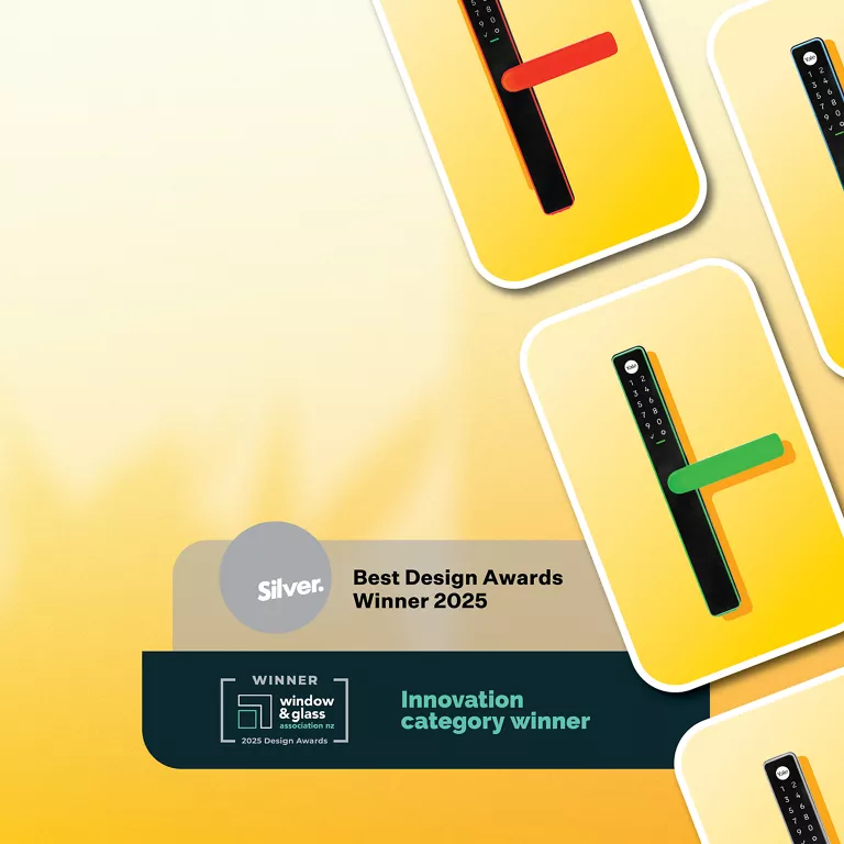 Equipped with multipoint locking for greater door sealing performance, a UV-tested screen, and an IP55 rating, the Unity® Slim Smart Lock has been built to withstand New Zealand’s harshest weather.