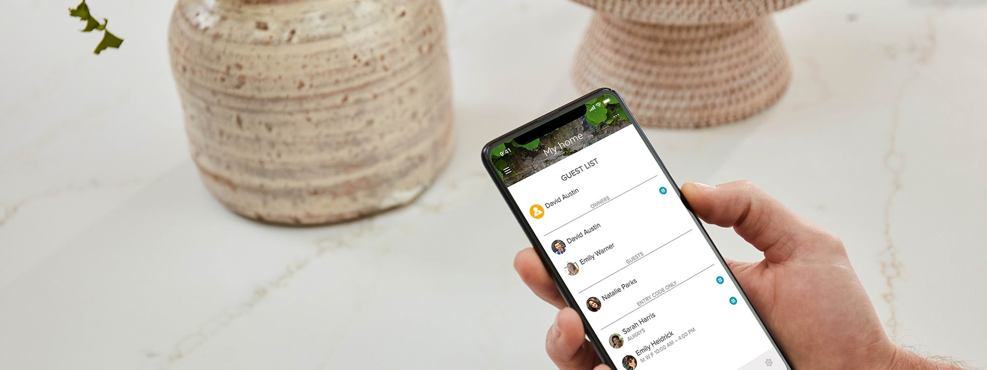 Select the ‘Guest Link’ icon on the bottom menu of the app. Select the name under “Owner”, and then select entry code.